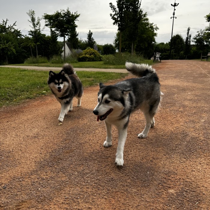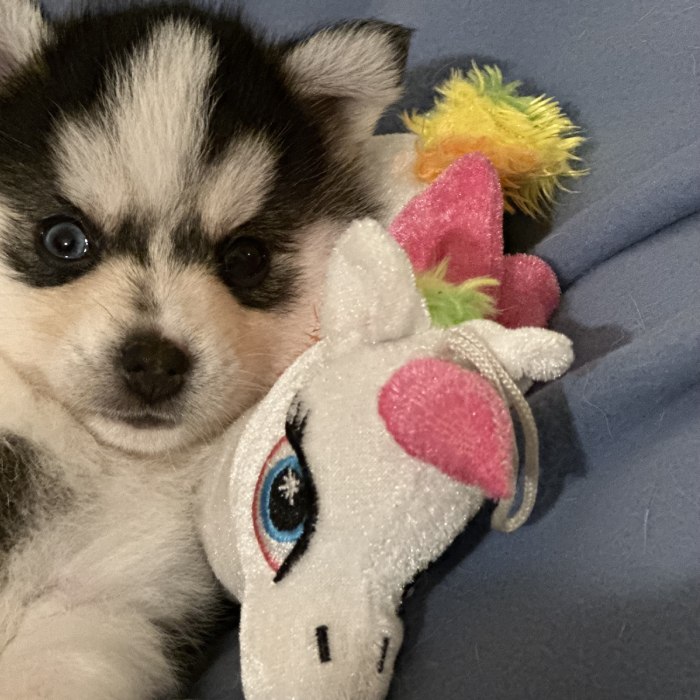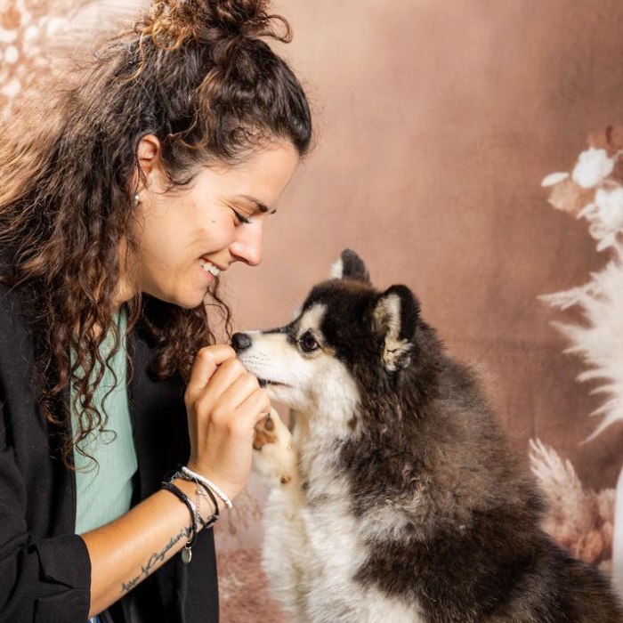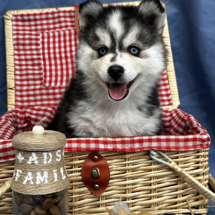 Nous élevons principalement des Pomskies, une race intelligente et polyvalente, idéale pour la médiation assistée par l’animal et d’autres rôles spécifiques. Nous élevons également des bouledogues français fluffy, petits molosses au cœur tendre, joyeux et communautaire.